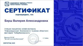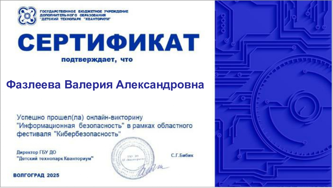 Учащиеся нашей школы приняли участие в областном фестивале "Кибербезопасность", который проходил с 8 сентября по 17 октября 2025 года и был организован Центром цифрового образования детей "IT-куб".
