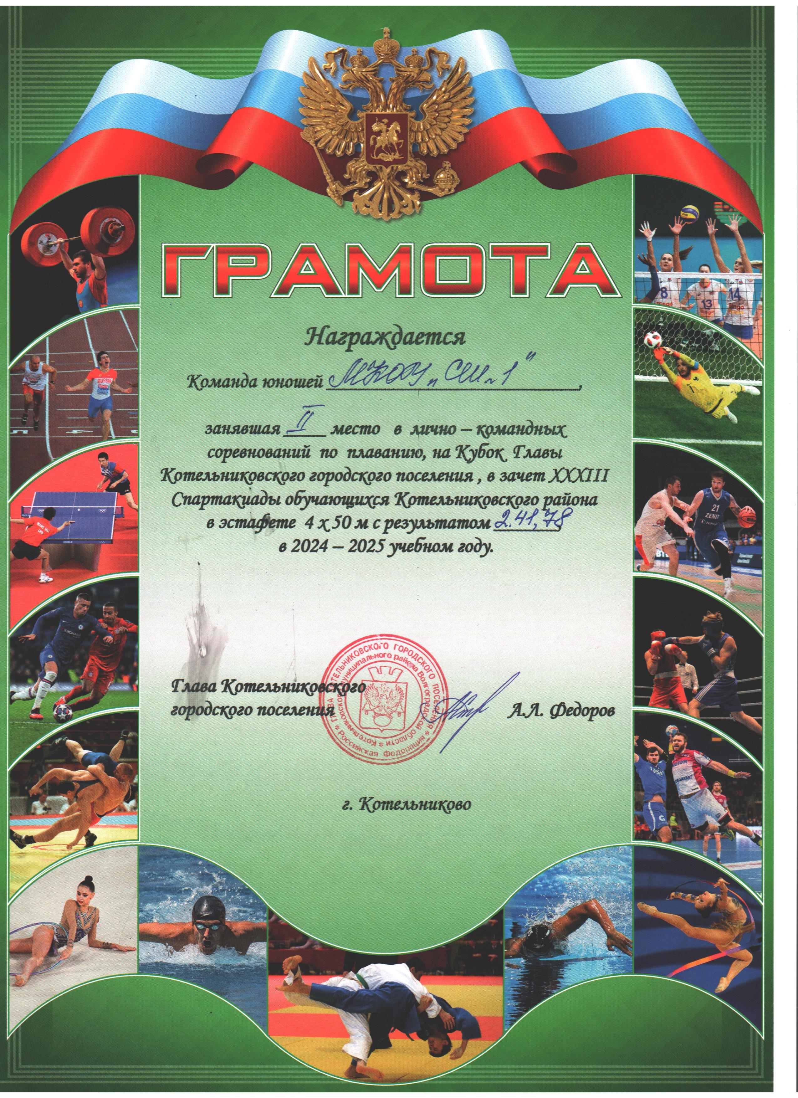 Лично-командные соревнования по плаванию на Кубок Главы Котельниковского городского поселения в зачет XXXIII Спартакиады обучающихся Котельниковского муниципального района